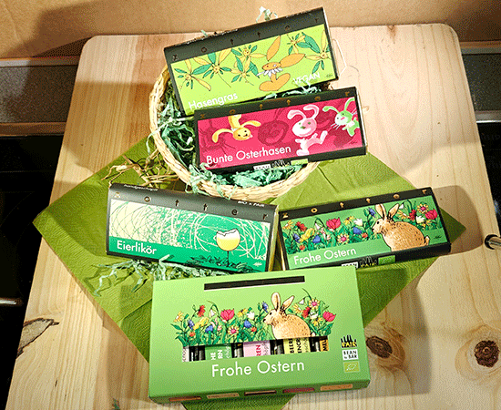 Und wir haben für euch und eure Lieben liebevoll ausgesuchte Geschenkideen wie zum Beispiel wunderbare Seifen von wolkenlos und Osterschokoladen von Zotter & Styx.